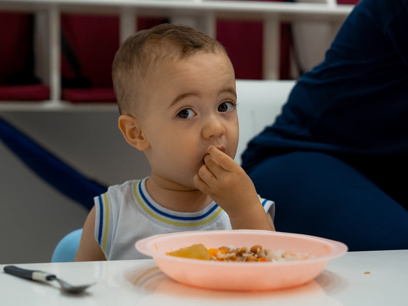 O bem-estar na primeira infância passa pelo consumo de alimentos saudáveis e refeições equilibradas. Além disso, durante as refeições a criança constrói conhecimento e relação com o outro. É uma fase decisiva para desenvolver o paladar, explorar novas texturas, cores, sabores e conhecer o mundo.